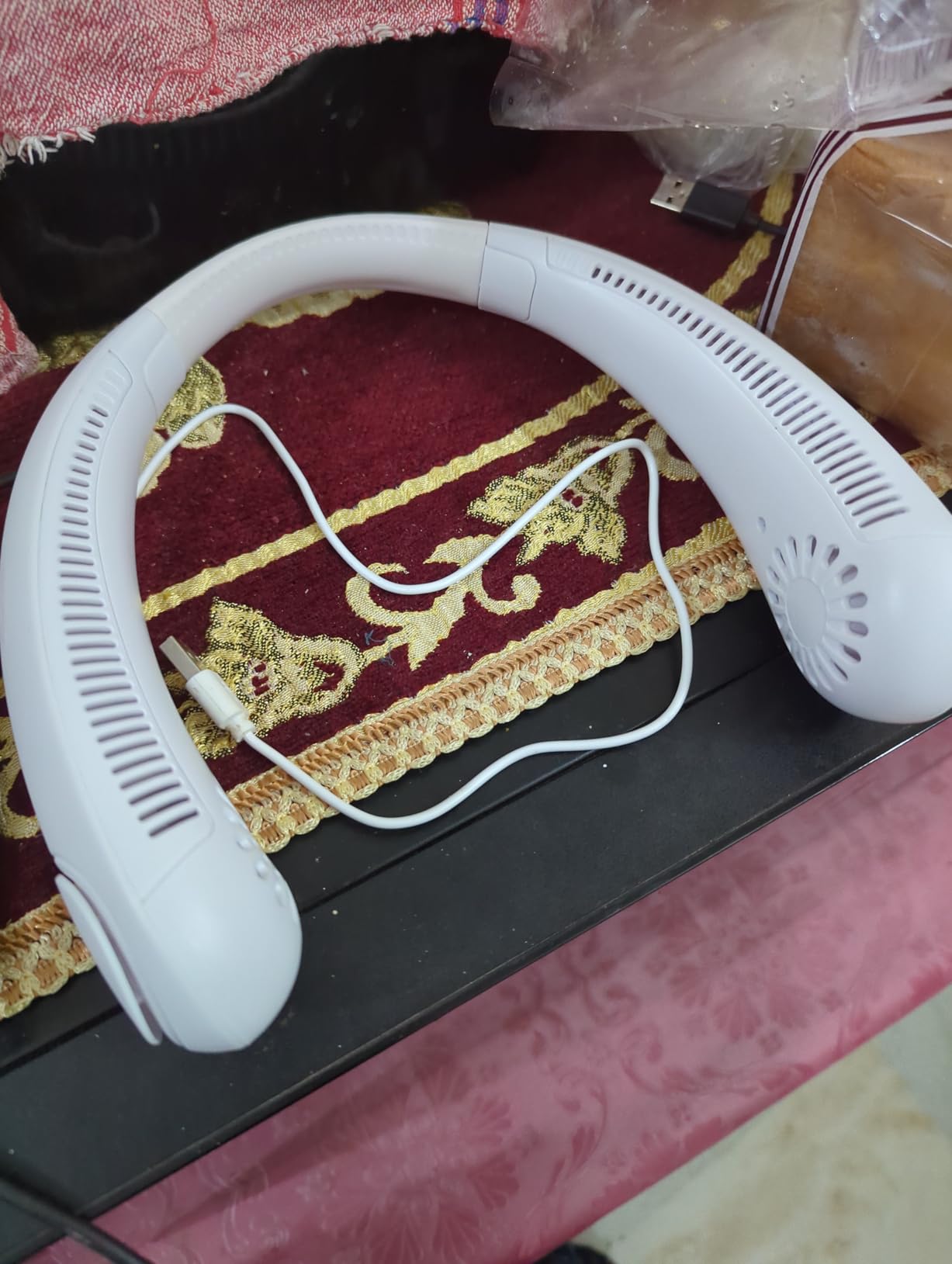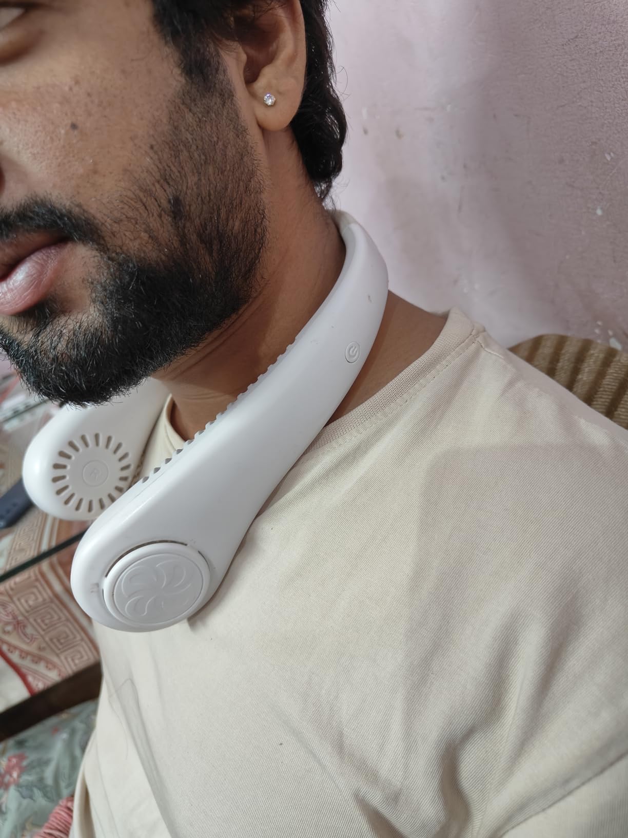 Wearable bladeless neck fan with powerful 360Β° airflow and long-lasting cooling comfort.